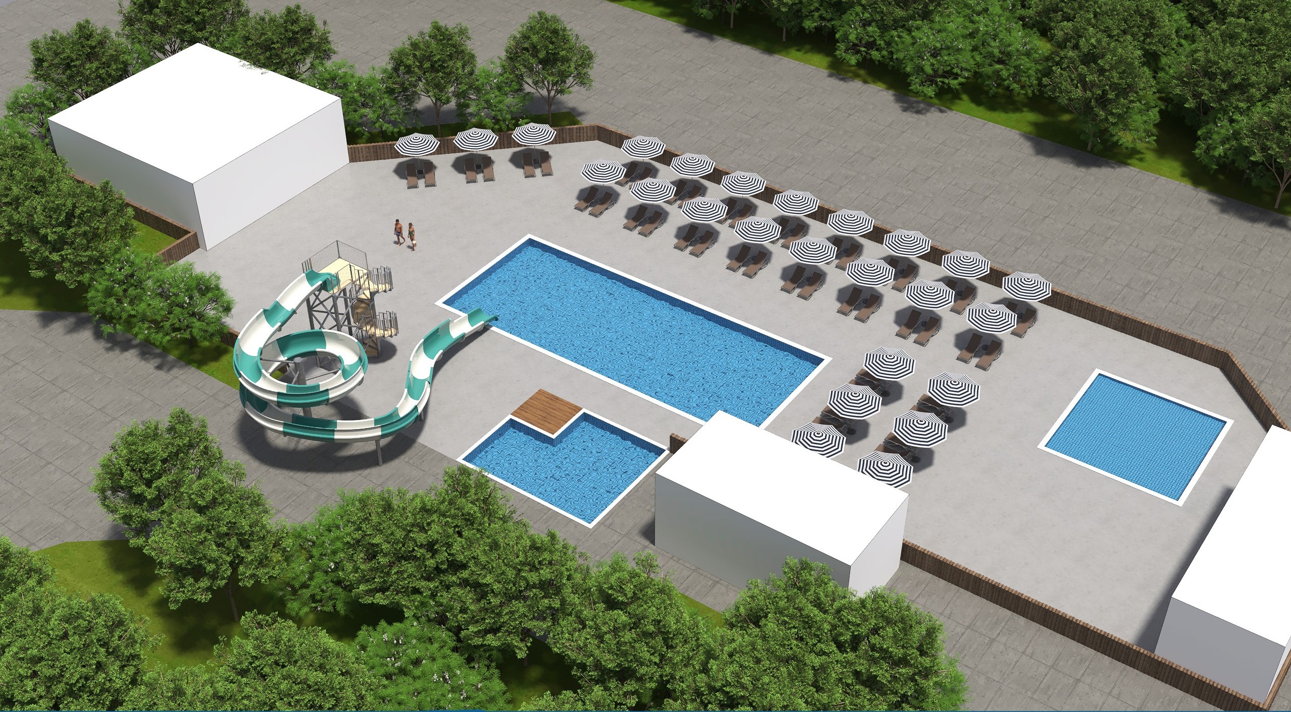 Older children can have fun in the main pool, measuring 8 x 20 m and 1.40 m deep, and there’s a slide for them if they’re not old enough to go on the big waterslides.