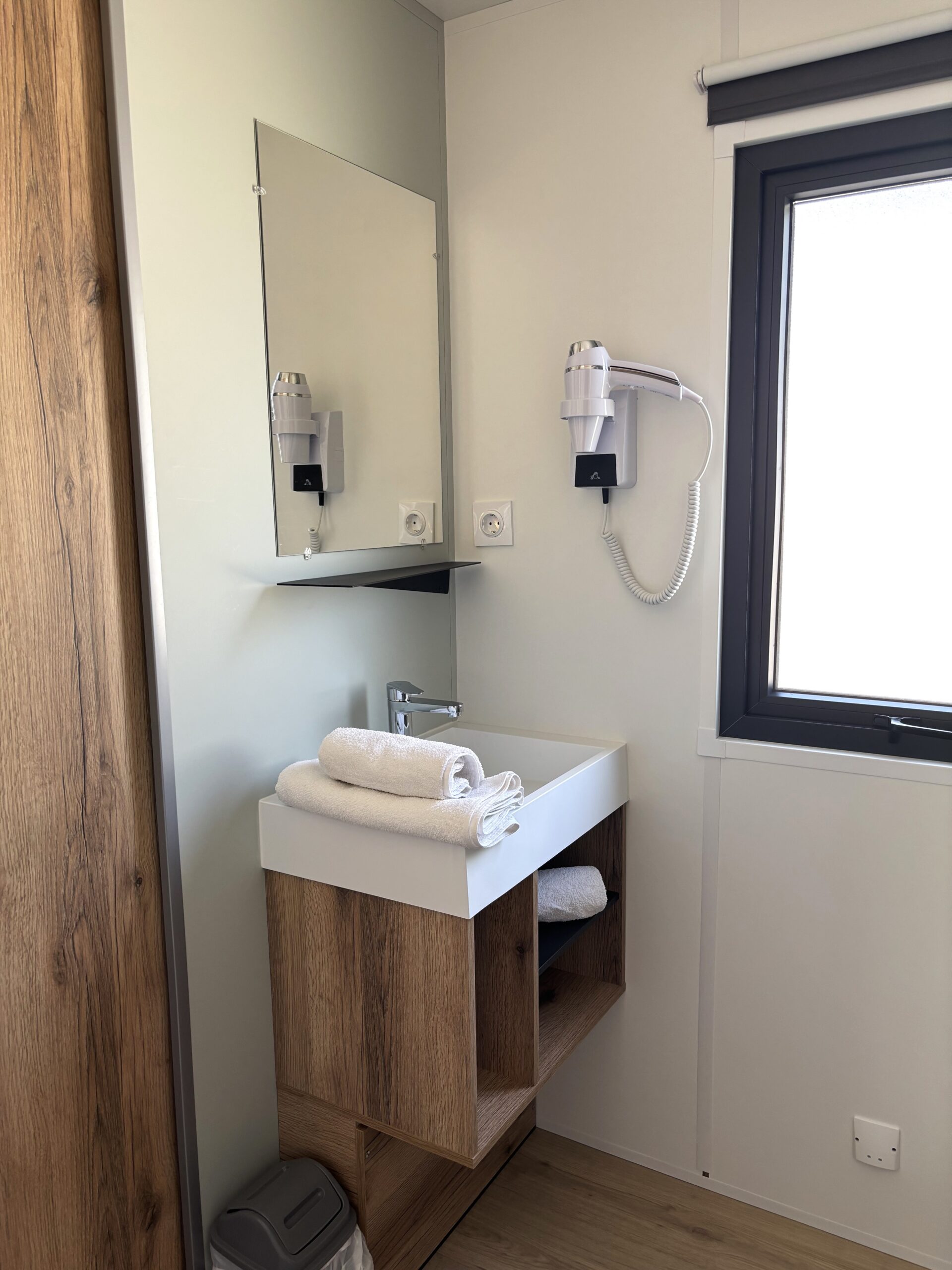 Mobile home (5 people) with 2 bathrooms (bedrooms have direct access to their bathroom).